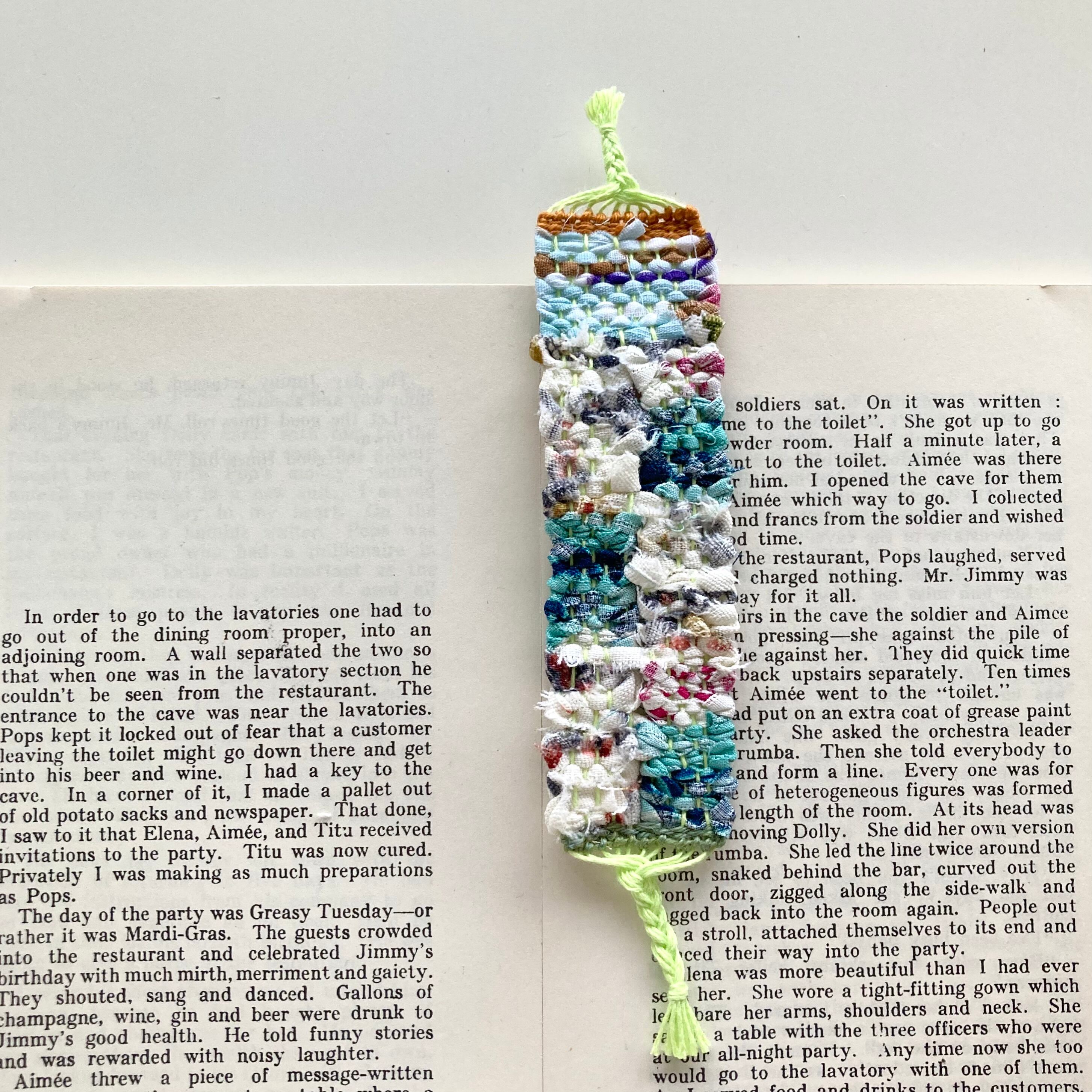 で織ったしおりです.