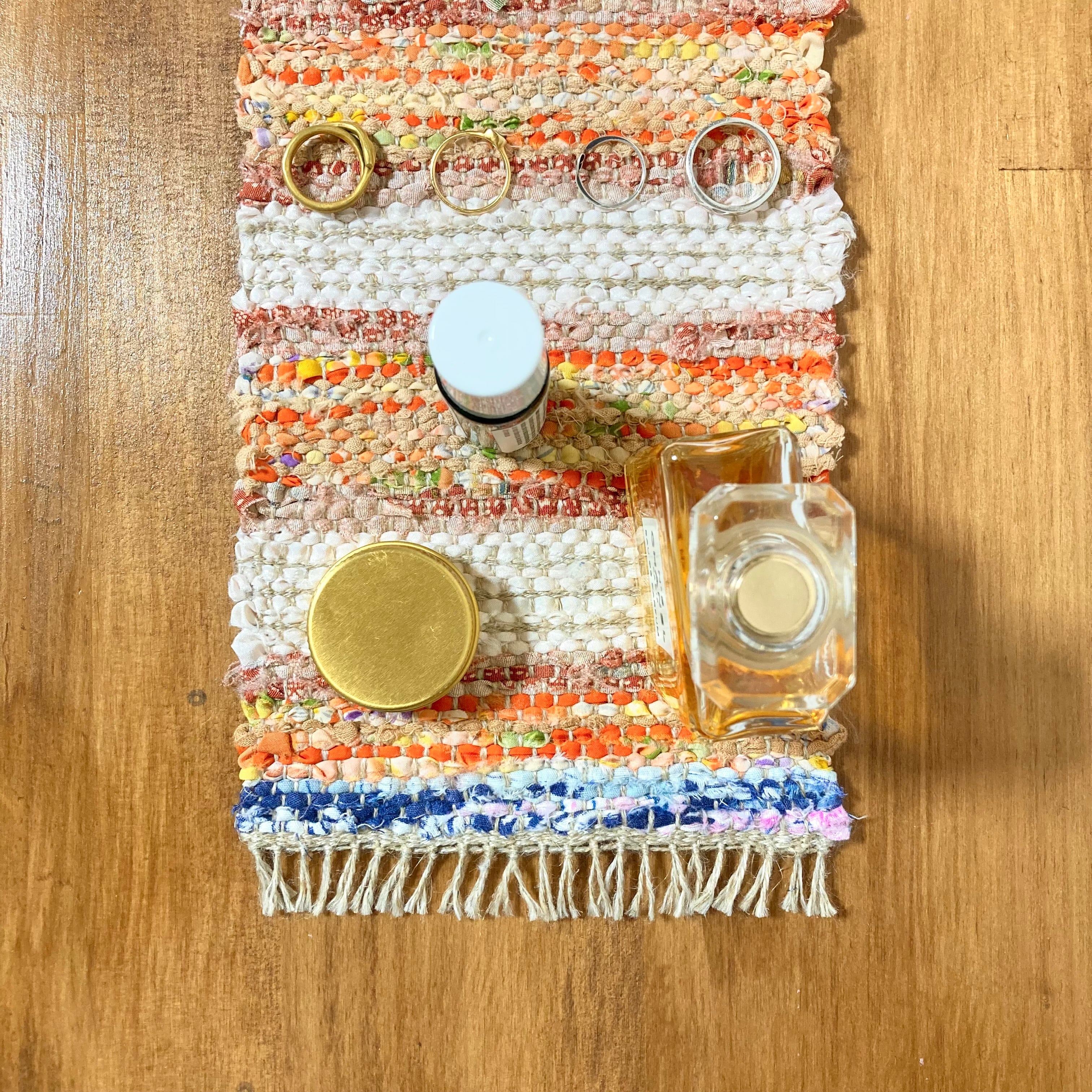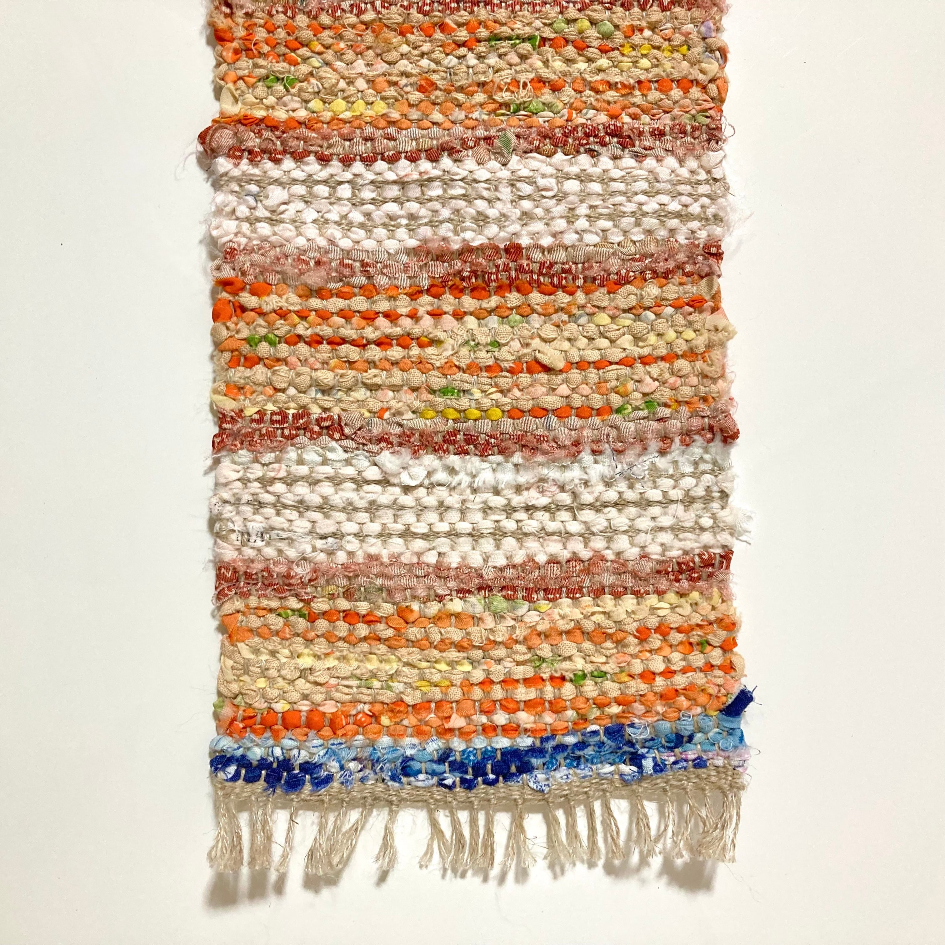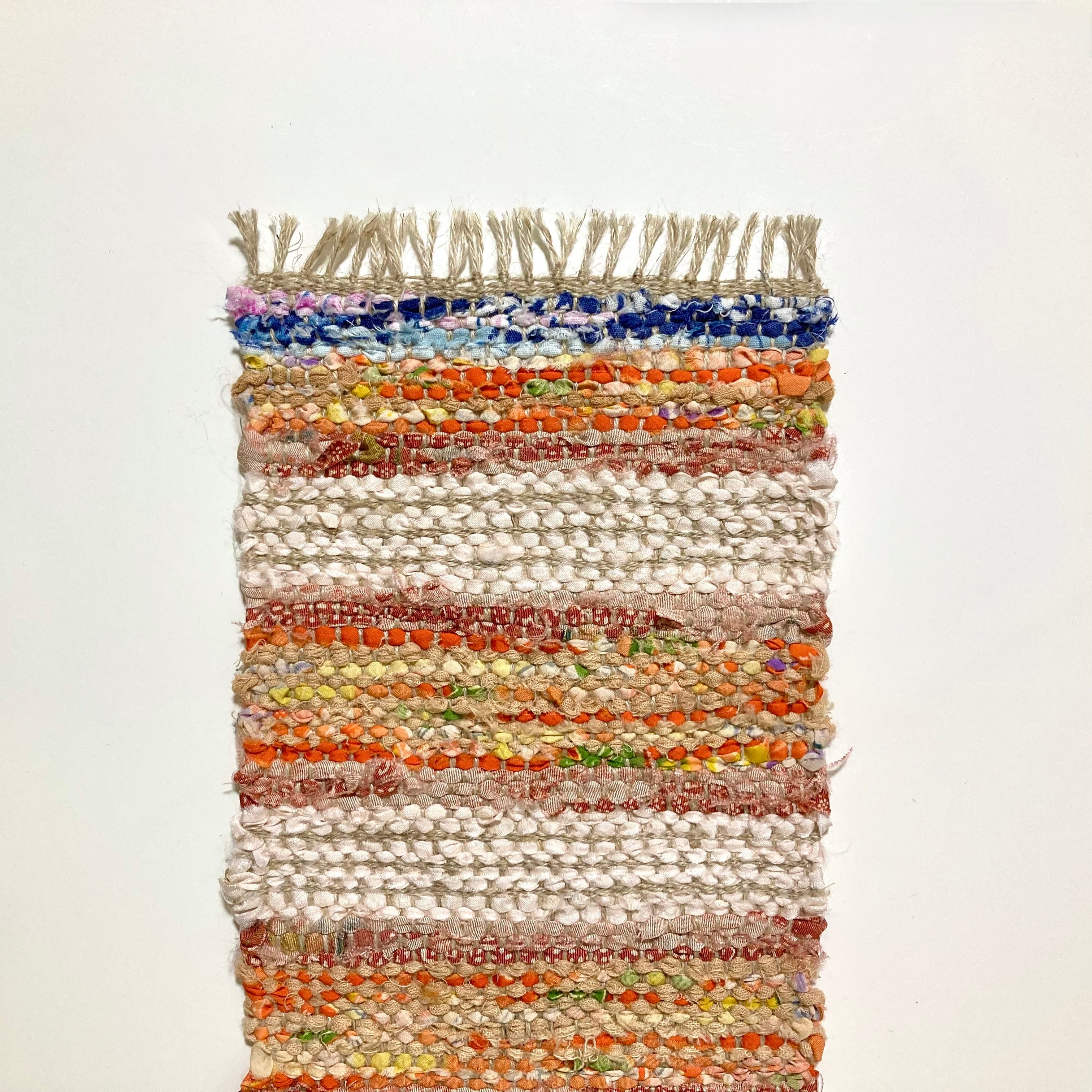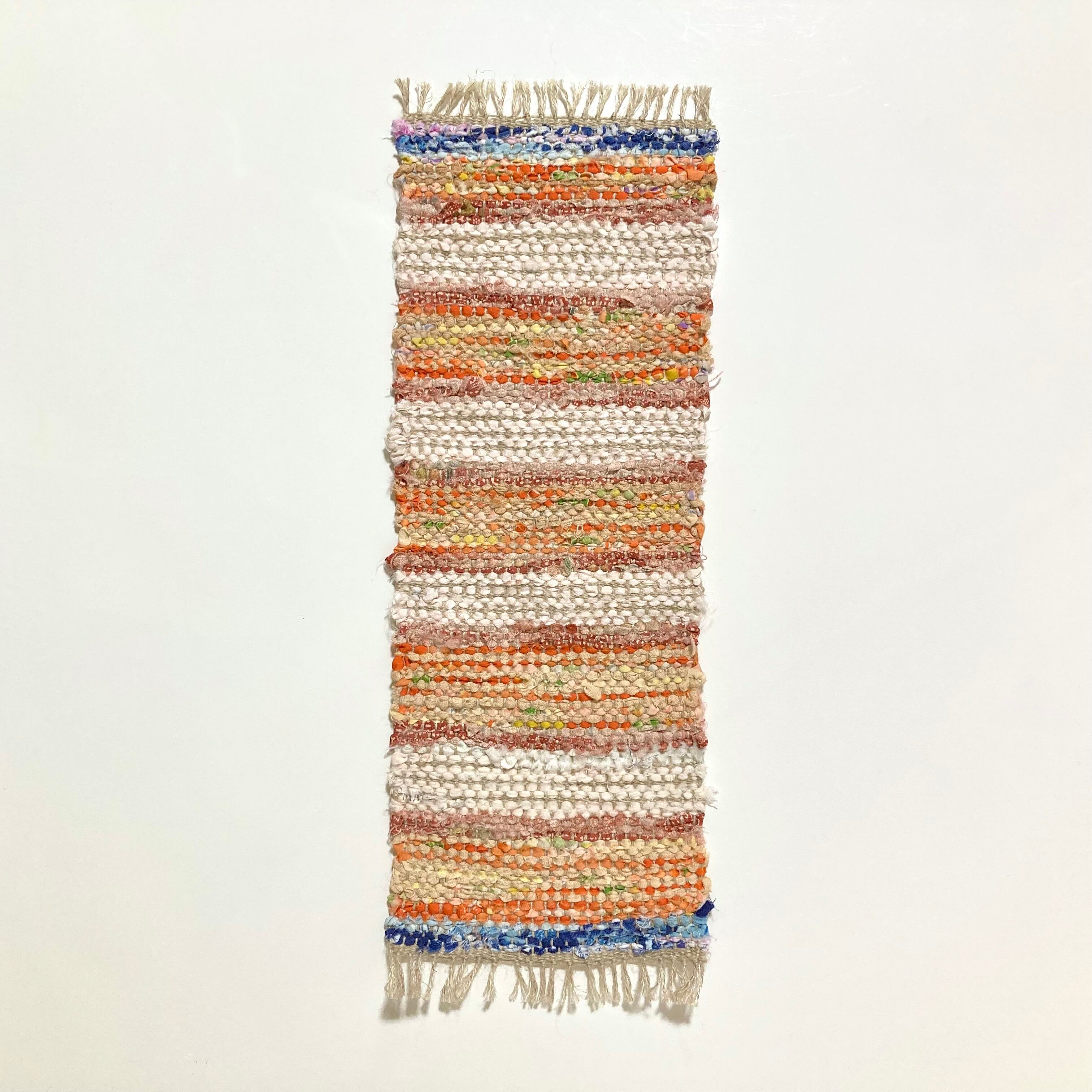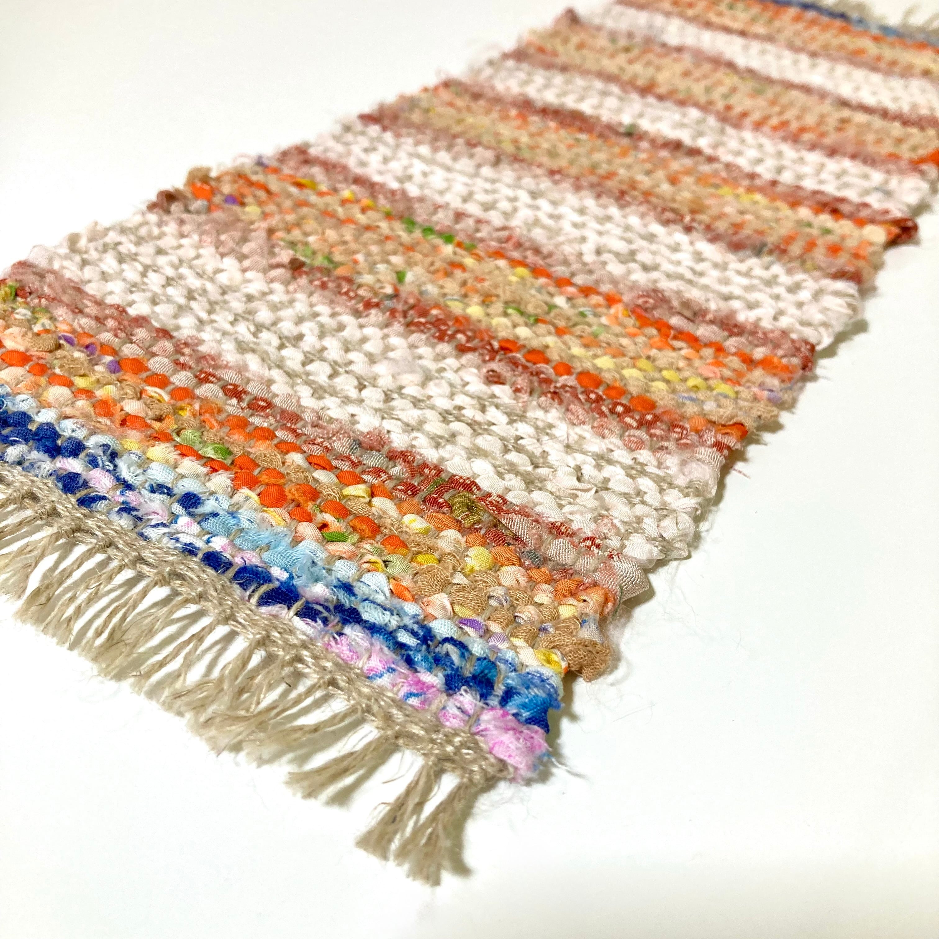 よこ糸として用いた裂織(さきおり)マット.