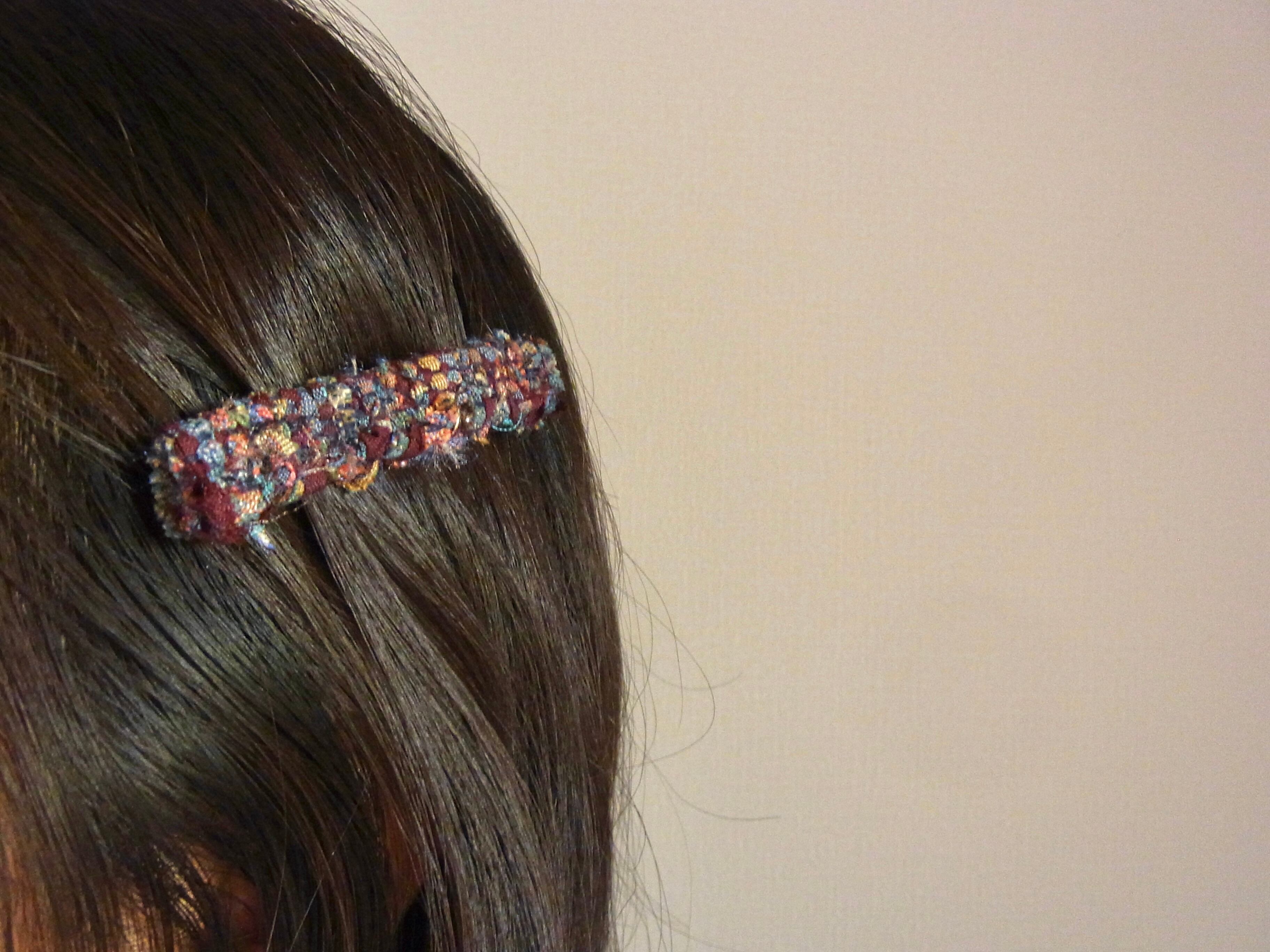裂織(さきおり)の髪飾り、バレッタです。