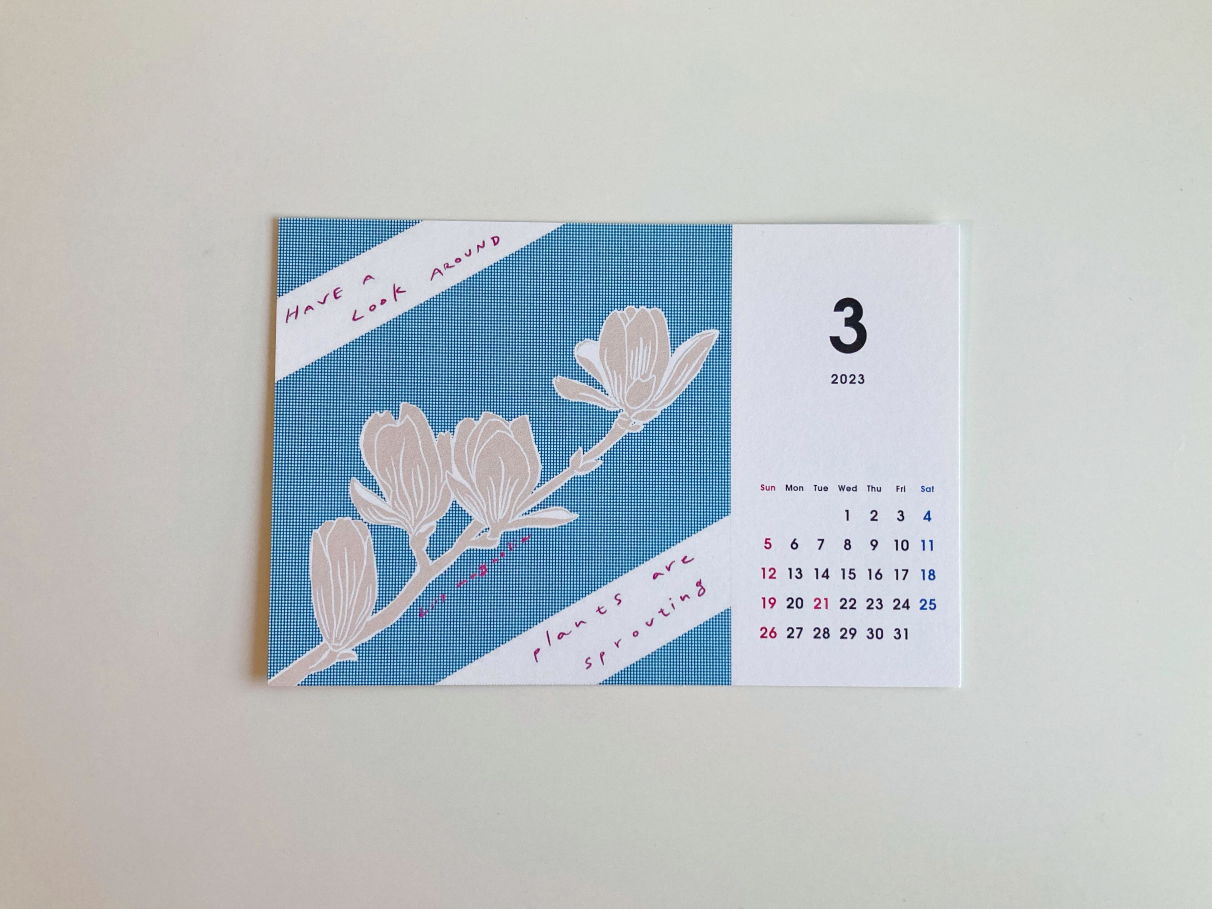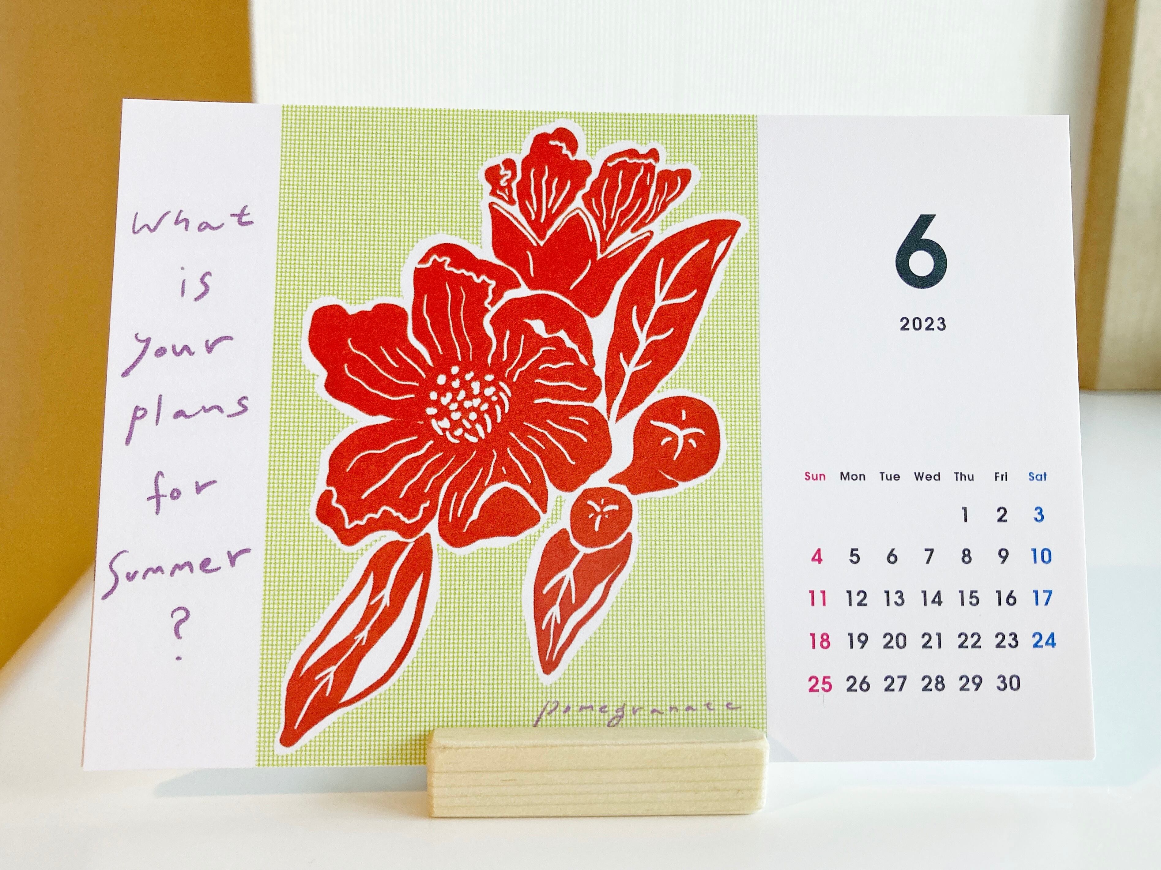 ハガキサイズの卓上カレンダー(木製スタンド付き)