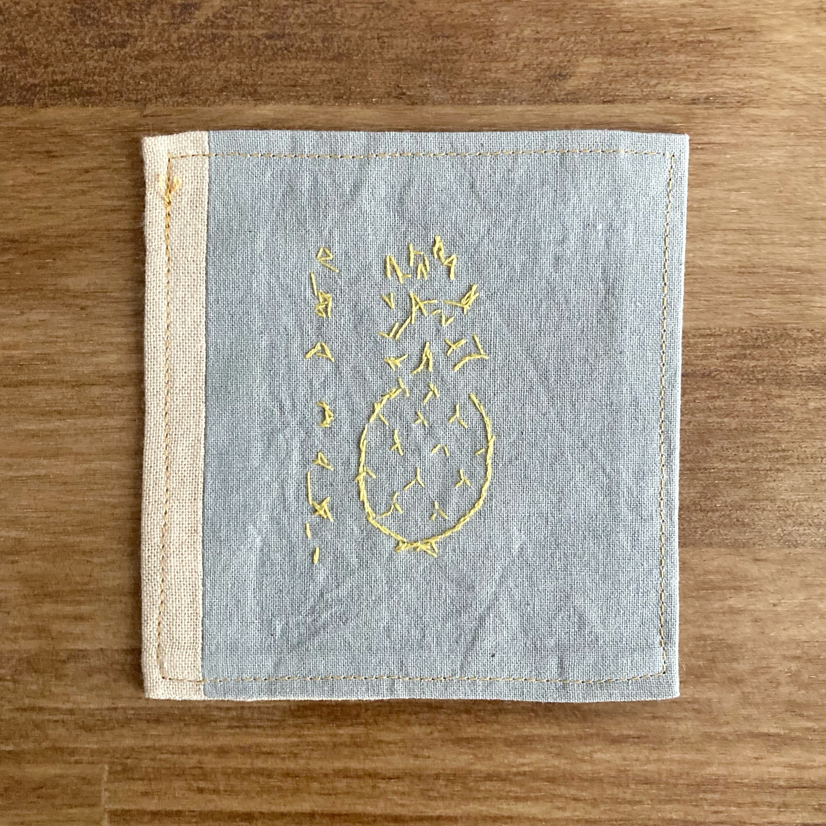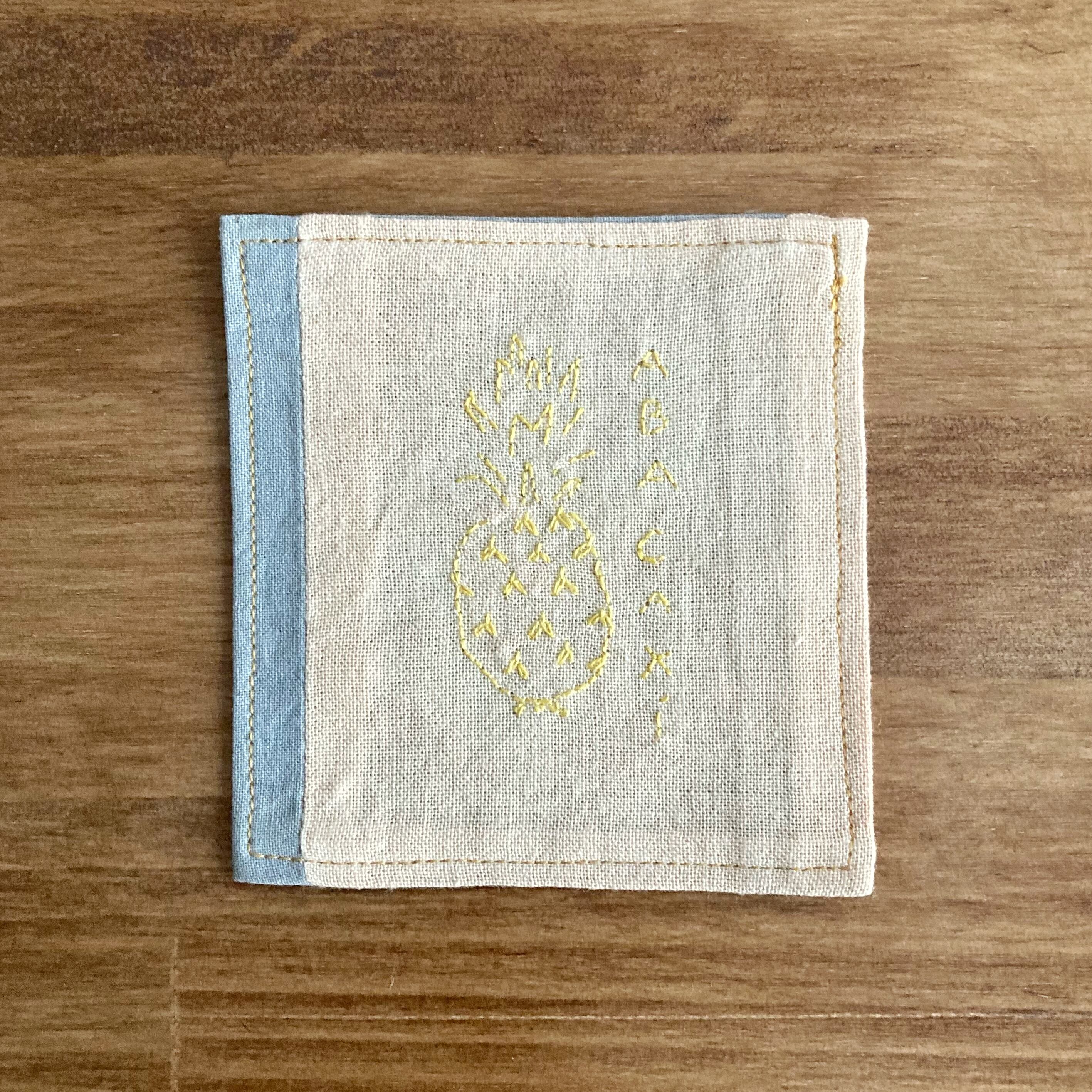 天然染 × 刺繍 コースター(パイナップル)