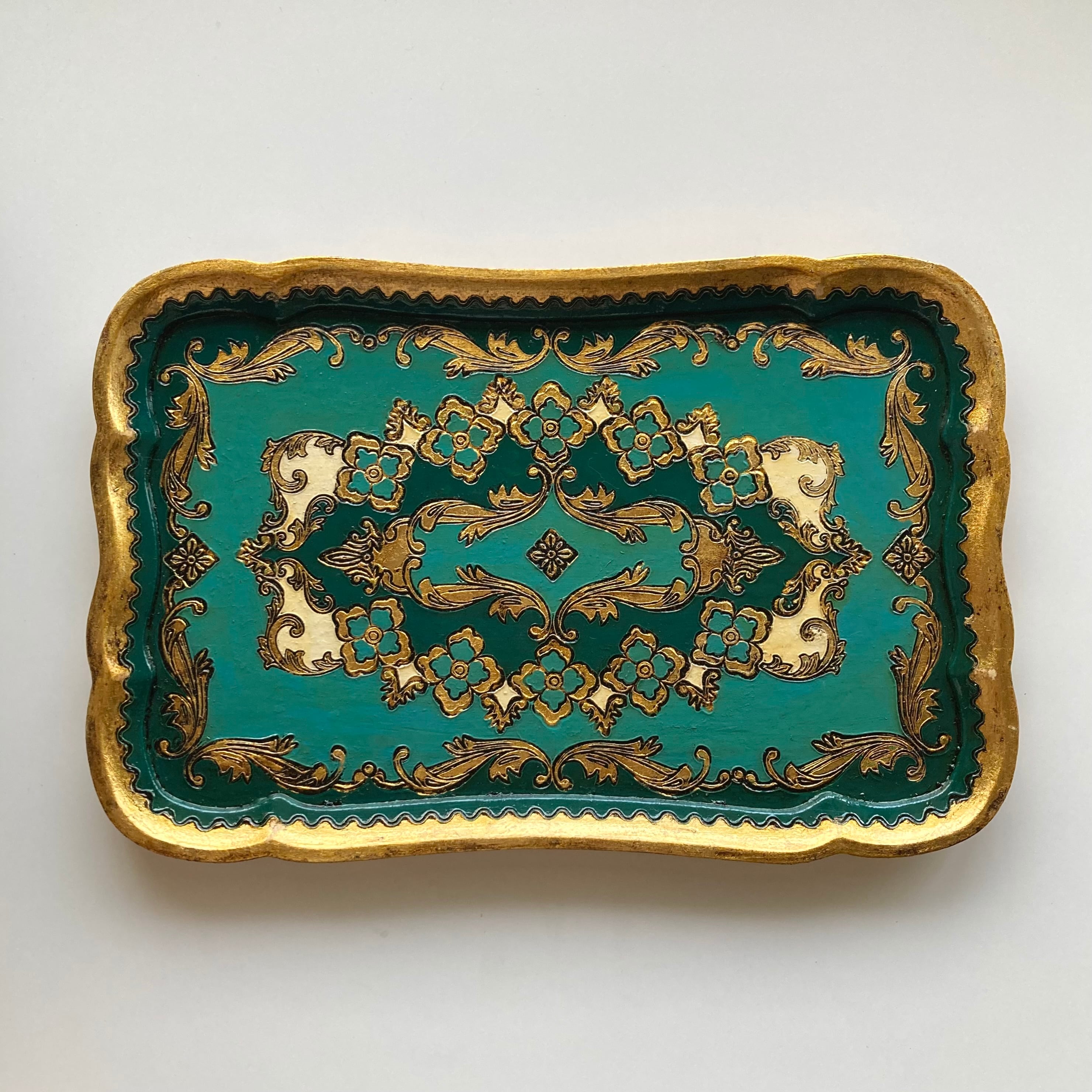 ルネッサンス時代の伝統的な模様が型押しされた木材に金箔を施し、一筆一筆、色がのせられています。